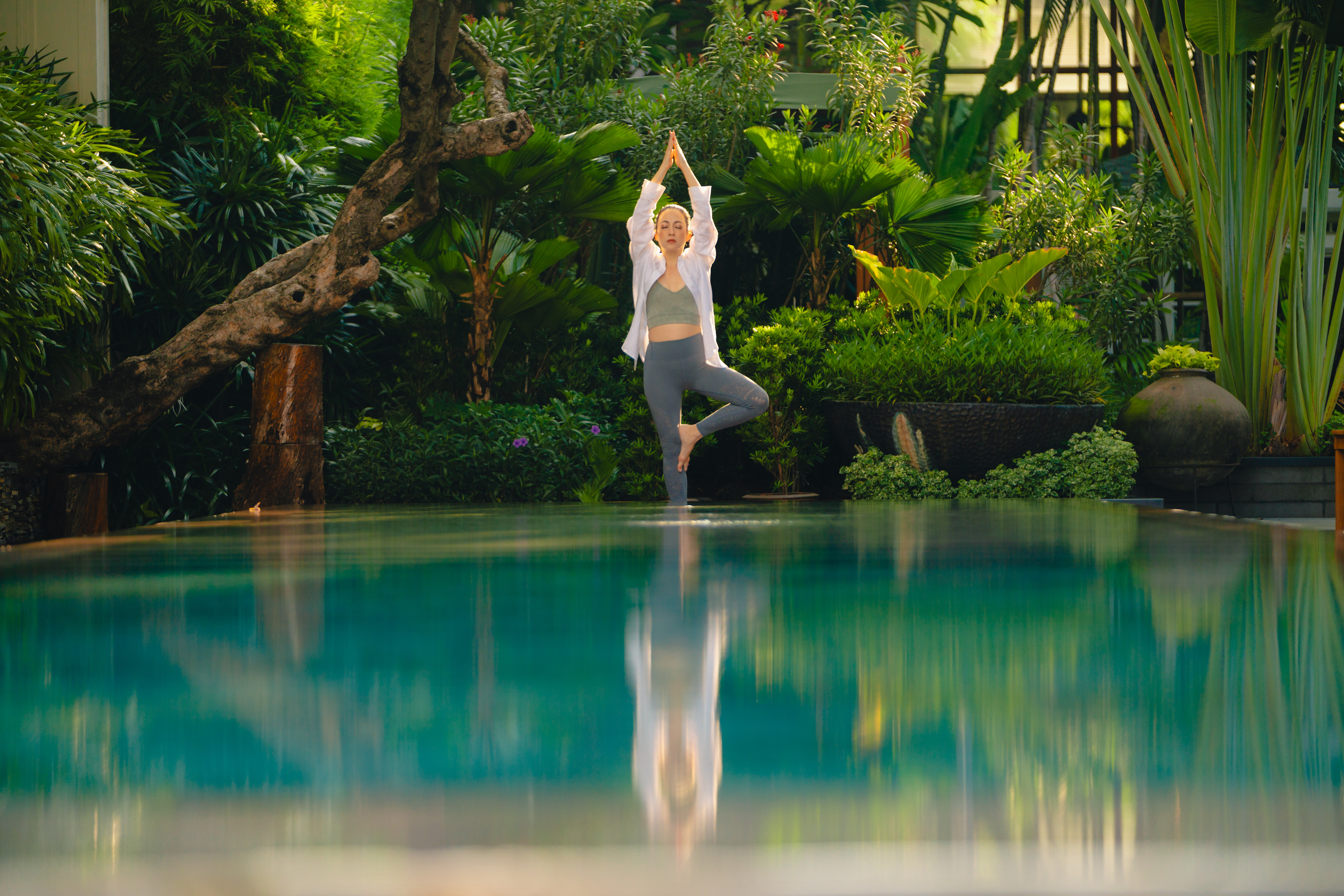 Einen Blick auf den Chao Phraya Fluss bietet auch der Poolbereich des Mandarin Oriental inmitten einer üppigen Vegetation mit zahlreichen Liegen und Sonnenschirmen. Die Oase der Ruhe wird von den Hotelangestellten mit rostfarbenen Badetüchern und einem Erfrischungsgetränk eingerichtet, Sonnencreme, Lesestoff und Obst stehen jedem Gast kostenlos zur Verfügung. Zu den beliebtesten Traditionen gehört das kostenlose Kokosnusseis, das täglich von 16 bis 17 Uhr am Pool serviert wird. Präsentiert von einem charmanten traditionellen thailändischen Eiswagen, fängt diese erfrischende Köstlichkeit die Essenz thailändischer Gastfreundschaft und des lokalen Geschmacks ein. Gerade für Reisende aus Europa, die am Abend zuvor in ihren Flieger gestiegen und am frühen Nachmittag in Bangkok angekommen sind, gehört das Poolerlebnis oftmals zu den beeindrucken Anfangsmomenten ihres Aufenthalts.